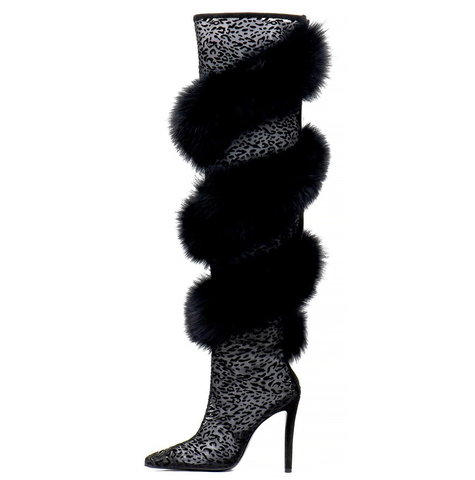 Nouveau modèle Bottes longues de luxe à la mode pour femmes Talons aiguilles sexy à bout pointu sur le genou Bottes hautes à fourrure